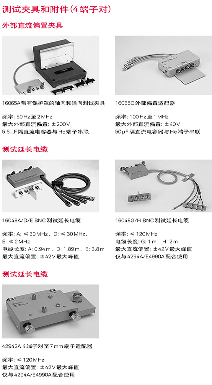 選擇測(cè)試夾具和選擇合適的測(cè)試設(shè)備一樣重要。是德科技提供大 量附件,用于軸向、徑向和SMD/片狀器件的測(cè)試。此外,是德 科技還提供了各種測(cè)試延長(zhǎng)電纜,用來(lái)簡(jiǎn)化遠(yuǎn)程測(cè)試和系統(tǒng)應(yīng) 用,以及帶有保護(hù)罩的外部測(cè)試夾具。 合適的測(cè)試夾具,可以從以下幾方面改善您的測(cè)量結(jié)果:更可靠和可重復(fù)的測(cè)量結(jié)果 ;更高的測(cè)試吞吐量;更少的操作錯(cuò)誤;更嚴(yán)格地滿足測(cè)試指標(biāo)的限制;更高的測(cè)量精度。…