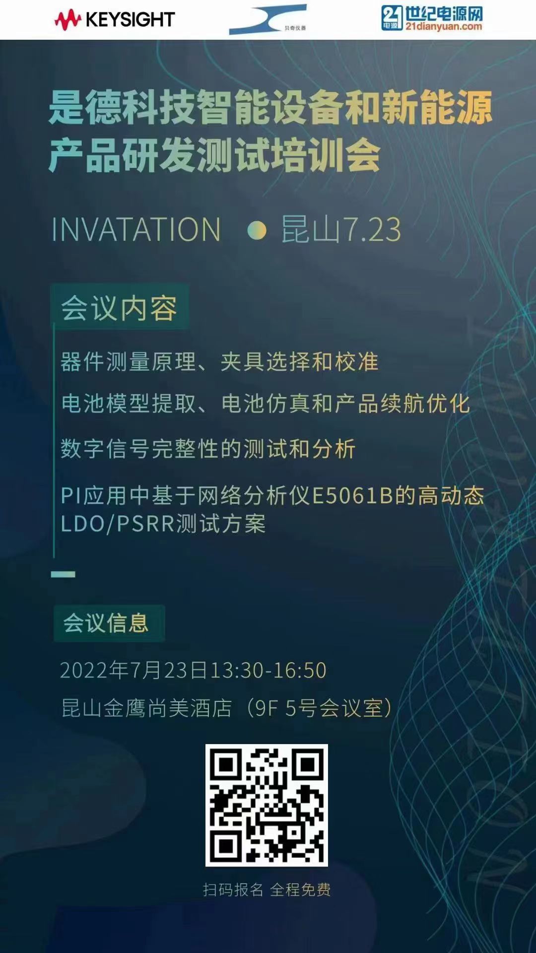 是德科技攜手蘇州貝奇在昆山金鷹尚美酒店為工程師們帶來最新的技術(shù)培訓,歡迎工程師們踴躍報名參加哦!
